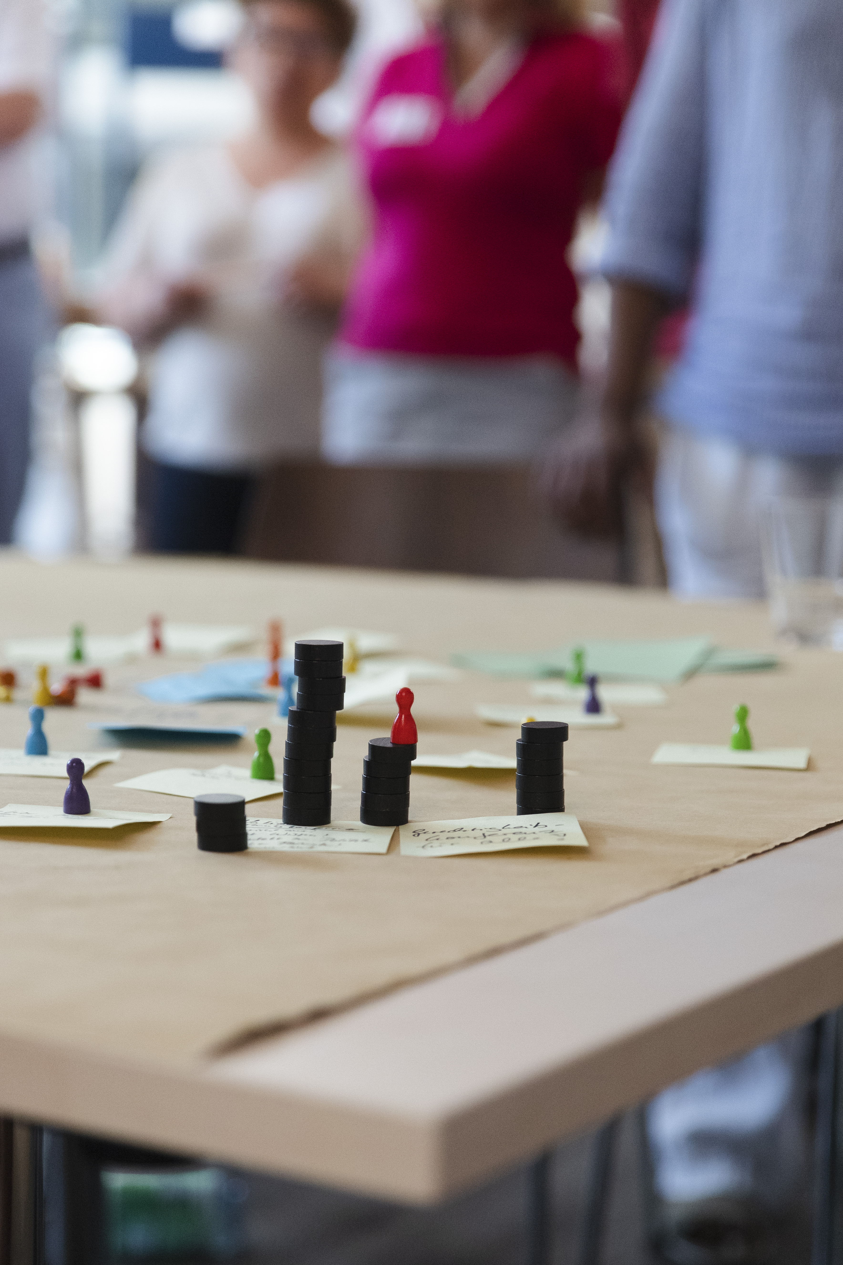Der partizipative Konferenztag startete mit einer Aufstellung, in der die Teilnehmenden sich zu ihrer Rolle in der Stadt positionierten. Nach einem inhaltlichen Impuls und einer intensiven Arbeitsphase wurden zentrale Herausforderungen identifiziert – darunter Themen wie Engagement stärken, Partizipation ermöglichen, Belastungen wie soziale Ungerechtigkeit und ihre Folgen sichtbarer machen sowie Dialog und Begegnung stärken.